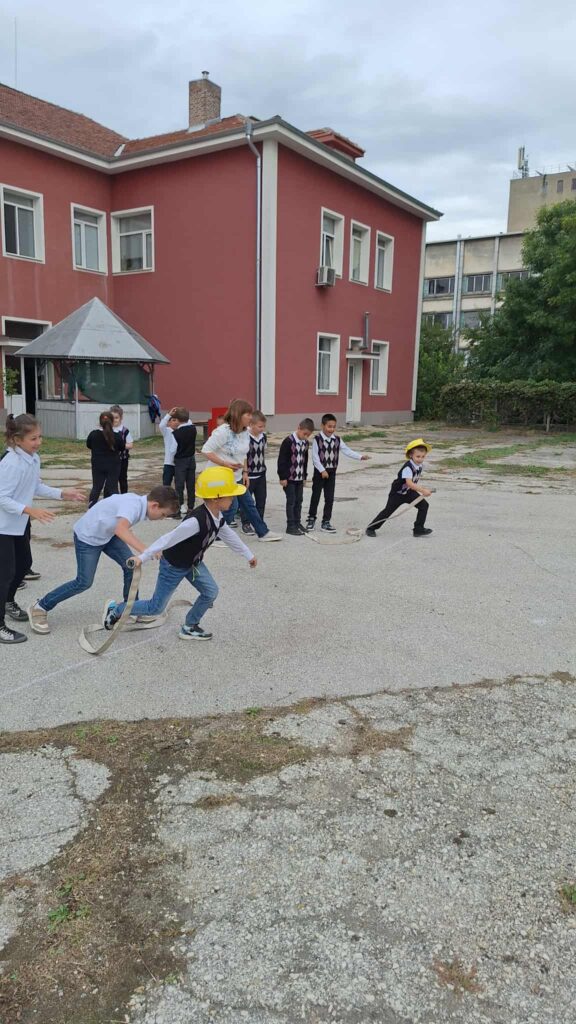 Посещението не премина само с полезна информация, а беше изпълнено и с много вълнение и радост. За учениците бяха организирани занимателни състезателни игри – дърпане на пожарникарски маркуч, поставяне на тежка каска и други забавни предизвикателства, които им позволиха за кратко да се почувстват като истински пожарникари.