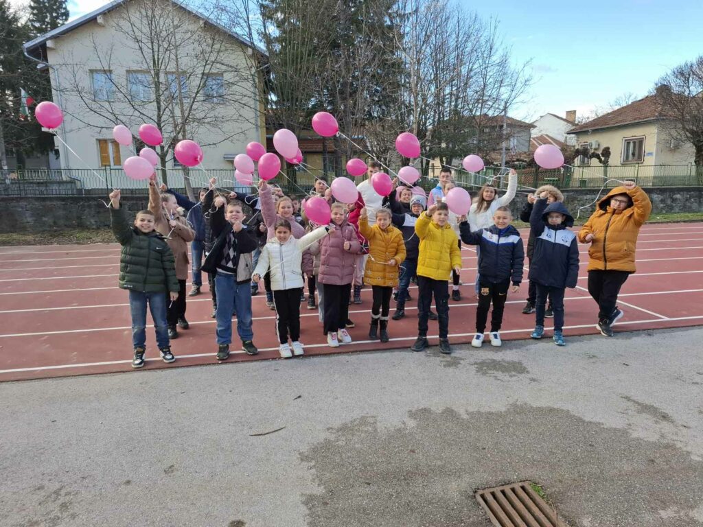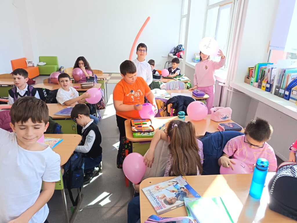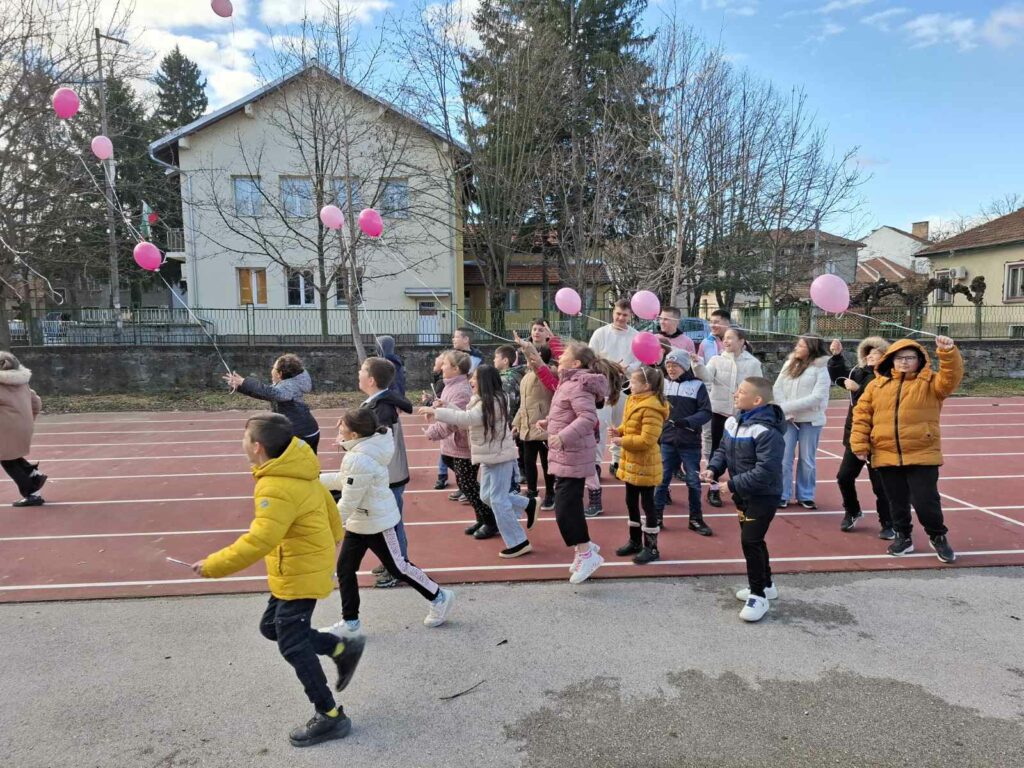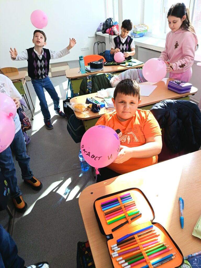 Всички заедно пуснаха розови балони с послание да бъдем толерантни, съпричастни и уважителни – не само в училище, а навсякъде около нас.
