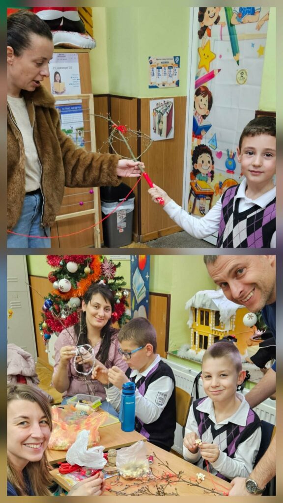 В класната стая на 1. Г клас с учител ЦОУД Диляна Пенчева се проведе работилница за изработка на традиционни български сурвакници. Събитието събра деца и родители, които рамо до рамо твориха и вплитаха в своите сурвакници пъстри цветове, красиви орнаменти и символи, характерни за българските празнични обичаи.