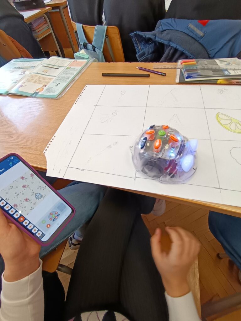 С помощта на роботчетата пчелички Blue-Bot, учениците: