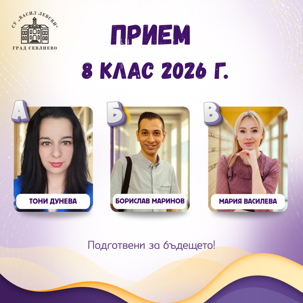 ПРИЕМ В VIII КЛАС ЗА УЧЕБНАТА 2026-2027 г.